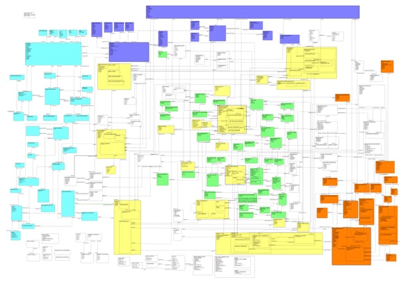 A colored version of the information model in the appendix of the book "Information Modelling - A method for improving understanding and accurarcy in your collaboration".
